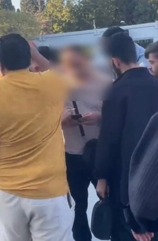Kızın fotoğrafının çekildiğinin gören 5 kişi, şüpheliyi tekme ve yumruklarla darbetti. İhbar üzerine olay yerine gelen polis ekipleri, şüpheliyi gözaltına aldı. Yaşananlar ise çevredekiler tarafından cep telefonu kamerasıyla kaydedildi.