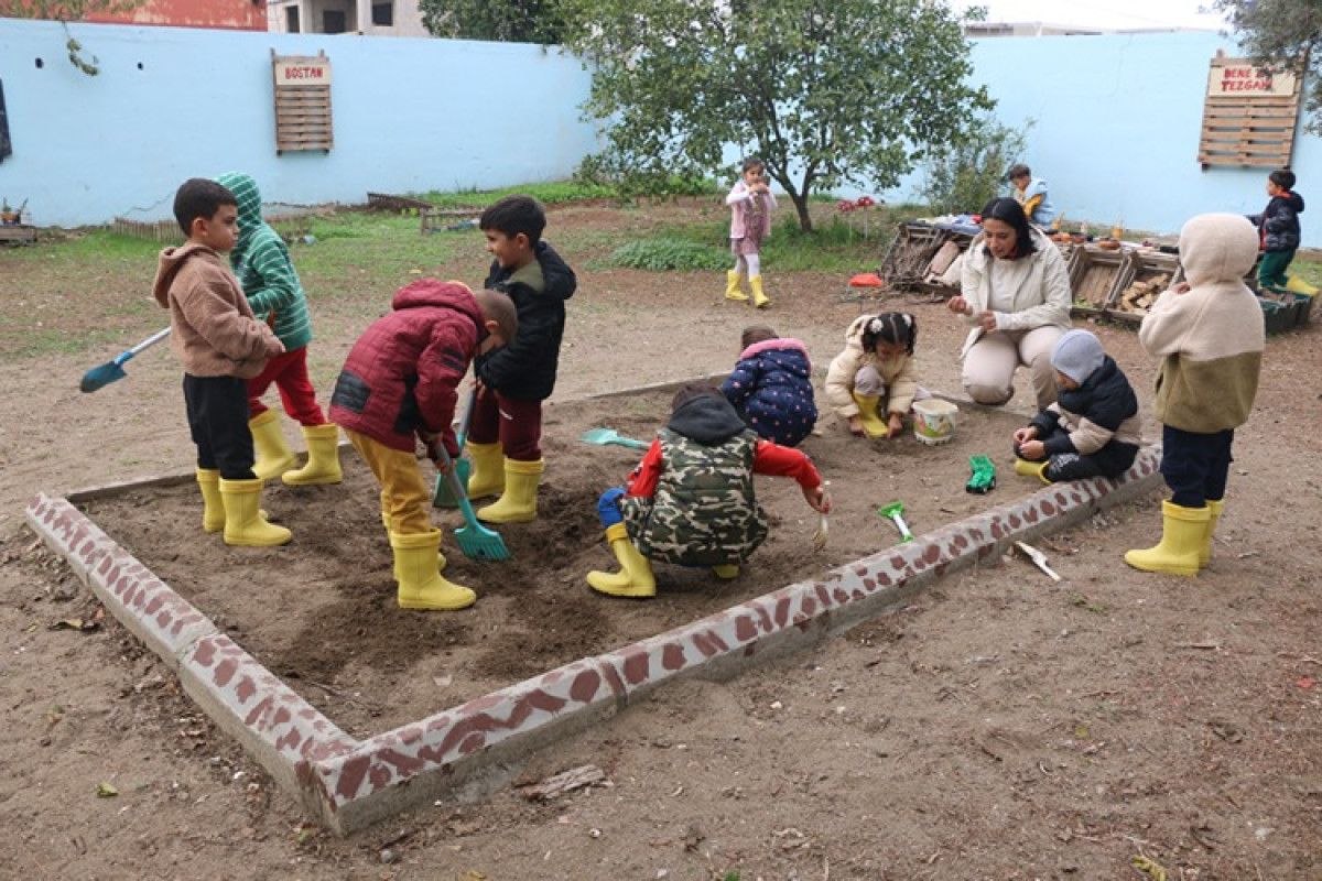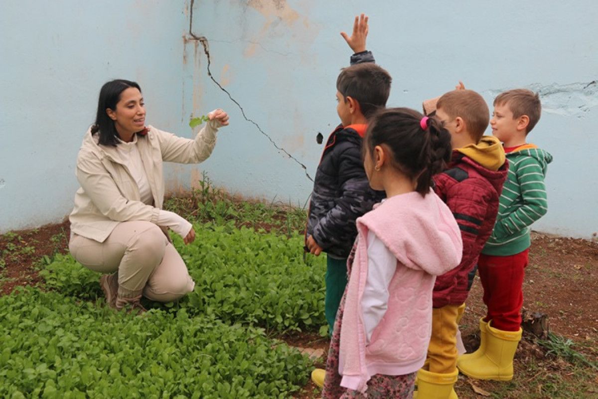 Adana’nın Seyhan ilçesindeki Adasokağı İlkokulu’nda görev yapan ana sınıfı öğretmeni Şeyda Uğurlu, okulun atıl durumdaki bahçesini çocukların temiz havada vakit geçirebileceği, öğrenirken eğleneceği bir eğitim alanına dönüştürdü. Bostan, denge parkuru, kum havuzu ve ağaç evle donatılan alan, minikler için açık hava sınıfına dönüştü.