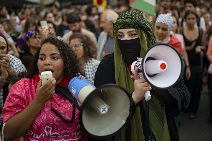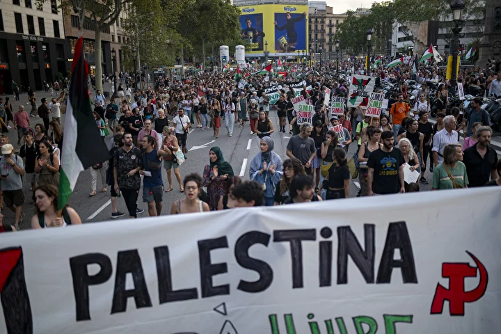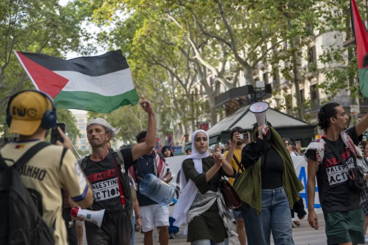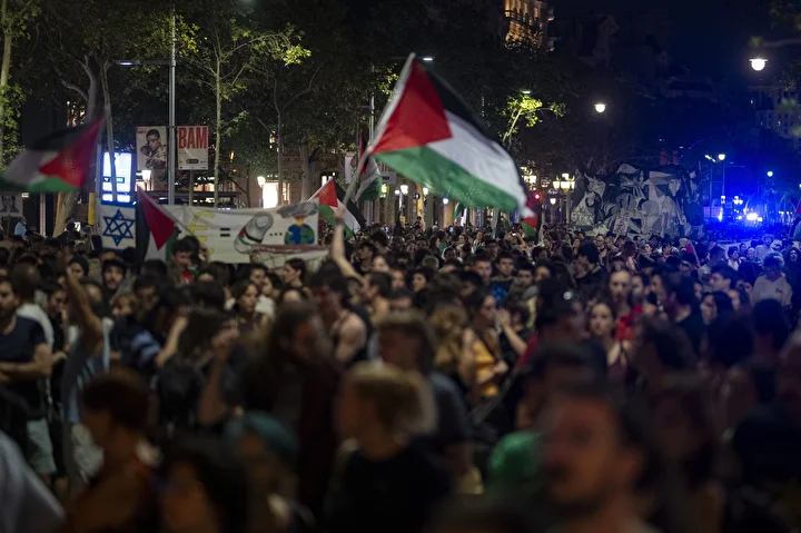 Diğer yandan Barselona’da sabah saatlerinde bu kez öğrenciler, Filistin’e destek ve İsrail’i protesto etmek için gösteri düzenledi.